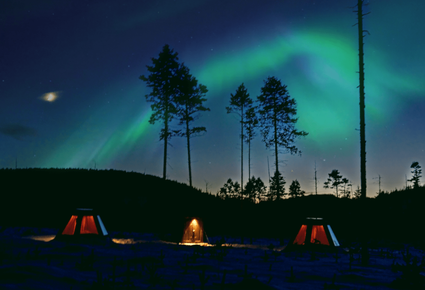 - Middag i kåtan och övernattning i Aurora Tepee.